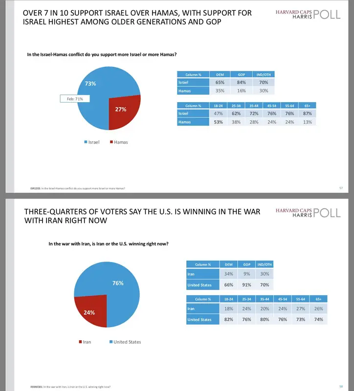 Большинство американцев считают, что Соединённые Штаты побеждают Иран в текущем конфликте, свидетельствует опрос Harvard Harris.