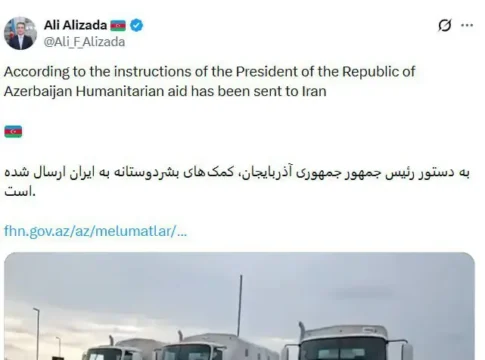 Президент Азербайджана распорядился направить гуманитарную помощь в Иран после атаки двух иранских беспилотных летательных апапратов на территорию страны.