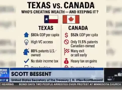 «Альбертцы — очень независимые люди. Ходят слухи, что они могут провести референдум, хотят ли они остаться в Канаде или нет. Люди говорят. Люди хотят суверенитета. Они хотят того, что есть у США», — заявил Бессент.