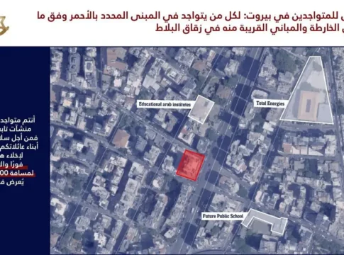 Представитель Армии обороны Израиля призвал жителей немедленно покинуть ещё одно здание в центре Бейрута. Речь идёт о доме в квартале Закак аль-Балат.