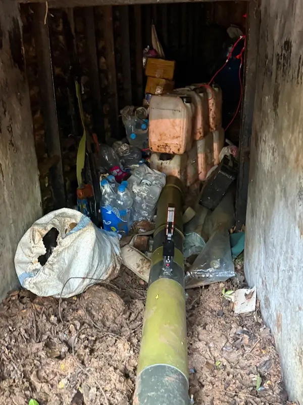 Внутри шахты туннеля военнослужащие обнаружили склад взрывных устройств, ракет, гранатометов и гранат.