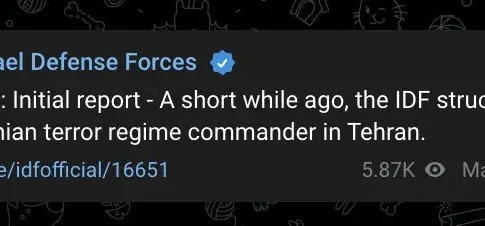 Армия обороны Израиля официально объявила о проведённой операции в иранской столице. В ходе точечного удара в Тегеране уничтожен старший командир иранских сил.