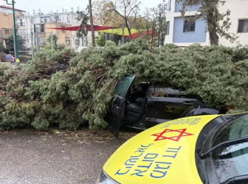 В Ришон-Ле-Ционе на улице Мордехая Анилевича дерево рухнуло на проезжающий автомобиль. Водитель, примерно 40-летний мужчина, получил травмы средней тяжести и госпитализирован. Спасатели расчищают проезжую часть, движение временно ограничено.