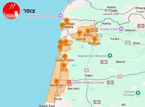 Беспилотный летательный аппарат «Хезболлы» пролетает южнее Нагарии, север Израиля. В этот же момент по региону выпущены ракеты.