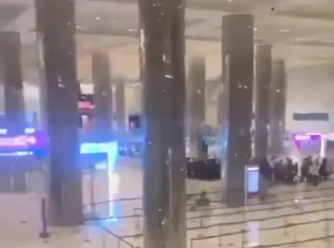 Аэропорт, крупнейший хаб на Ближнем Востоке, приостановил все рейсы. Пассажиры направляются к безопасным зонам, спасатели проверяют здания на предмет повреждений.