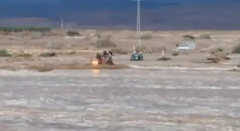В ущелье Аравы трактор с сельскохозяйственными рабочими попытался пересечь поток воды. Машину снесло течением, несколько человек оказались в воде. Двое из них до сих пор не выходят на связь, их ищут спасатели.