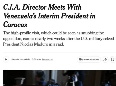 Директор ЦРУ Джон Рэтклифф провёл встречу с временным президентом Венесуэлы Дельси Родригес в Каракасе, сообщает The New York Times.