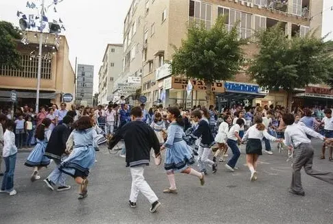 В июне 1972 года толпы людей вышли на улицы Ришон-ле-Циона, чтобы отпраздновать. Как они праздновали? Конечно, народными танцами. Посмотрите на радость в центре города.