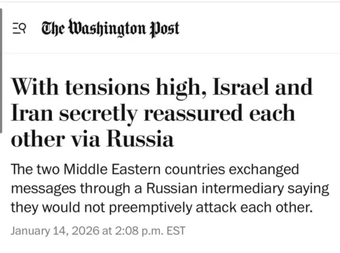 За несколько дней до начала массовых протестов Израиль и Иран передали друг другу через российских посредников чёткий сигнал: ни одна из сторон не планирует наносить инициативные удары по противнику. Об этом сообщает местный Telegram-канал.