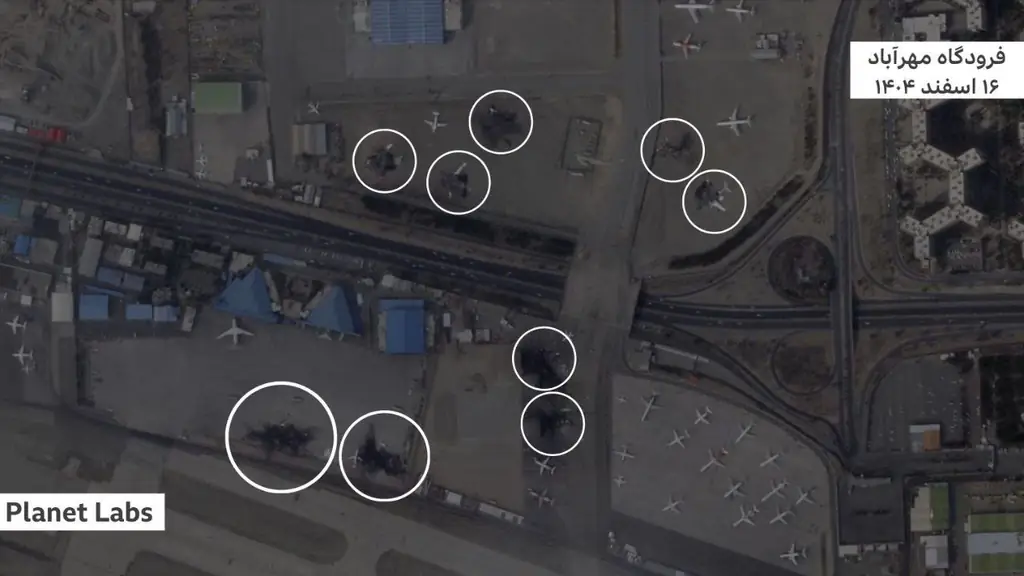Иранские самолёты на аэродроме Мехрабад оказались под ударом. Очевидцы сообщают о пожарах на взлётных полосах.