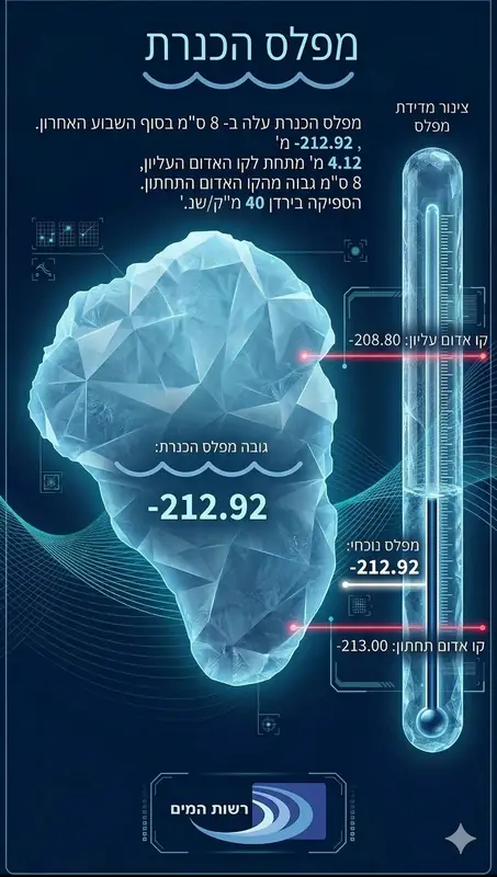 Уровень озера Кинерет поднялся на 8 сантиметров за последние выходные благодаря обильным дождям. По данным Гидрологической службы, сегодня уровень воды вырастет еще минимум на 2 сантиметра из-за притока в реке Иордан.