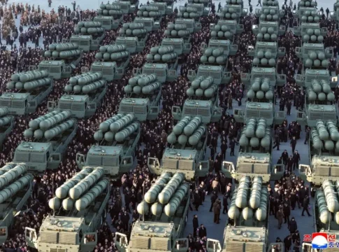 КНДР впервые продемонстрировала новые 600-мм реактивные системы залпового огня. В центре Пхеньяна показали 50 установок, которые лидер страны Ким Чен Ын назвал «самым эффективным оружием для сверхмощных ударов».