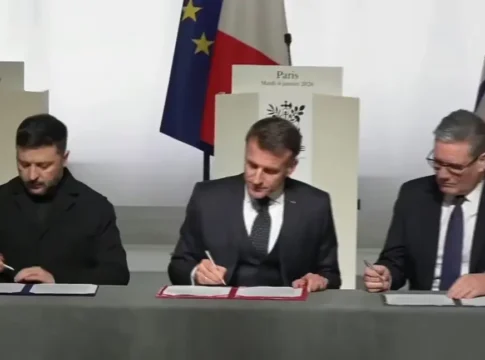 Президент Франции Эммануэль Макрон, премьер-министр Великобритании Кир Стармер и президент Украины Владимир Зеленский подписали декларацию о намерениях по развертыванию будущего многонационального контингента на украинской территории.