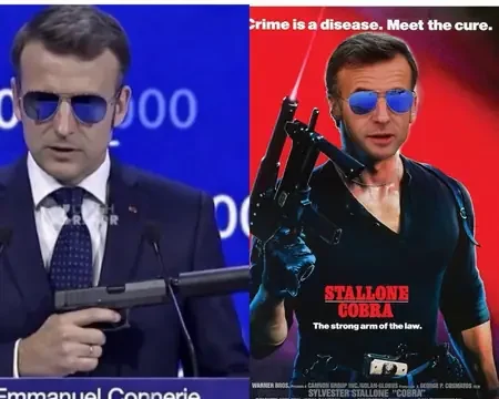 Пользователи соцсетей запустили флешмоб, сравнивая Макрона с персонажами кино и комиксов. Под хэштегом #МакронЧелюсти появились коллажи, где президент изображён в образе агента из «Людей в чёрном» и супергероя.
