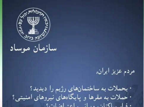 Канал Mossad на персидском языке в Telegram опубликовал обращение к жителям Ирана. В сообщении говорится: «Дорогие иранцы, вы видели атаки на здания режима? На штабы и базы сил безопасности? Люди бегут, рушатся конструкции, идут протесты, повсюду силовики? Продолжайте фотографировать и присылать нам снимки».