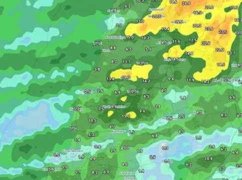 Икон: ночью — слабый дождь, а с полудня среды начнётся мощная волна, добравшаяся даже до Шарона. Осадки закончатся только к вечеру четверга.