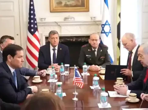 Премьер-министр Израиля Биньямин Нетаньяху встретился с госсекретарём США Марко Рубио в особняке Блэр-Хаус в Вашингтоне.