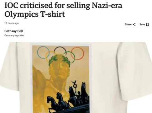 В официальном магазине Олимпийских игр поступили в продажу футболки с символикой Берлинской Олимпиады 1936 года — мероприятия, которое нацистский режим использовал как инструмент пропаганды.