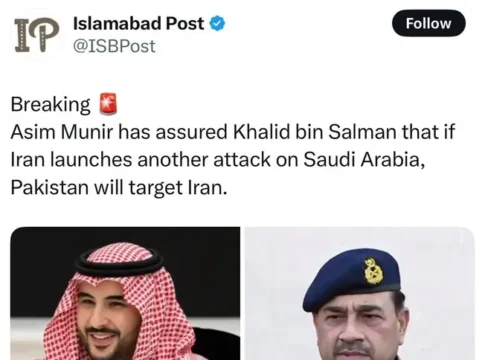 Глава армии Пакистана генерал Асим Мунир заверил наследного принца Саудовской Аравии Мухаммеда бин Салмана, что Исламабад готов нанести удар по Ирану, если Тегеран снова атакует королевство.