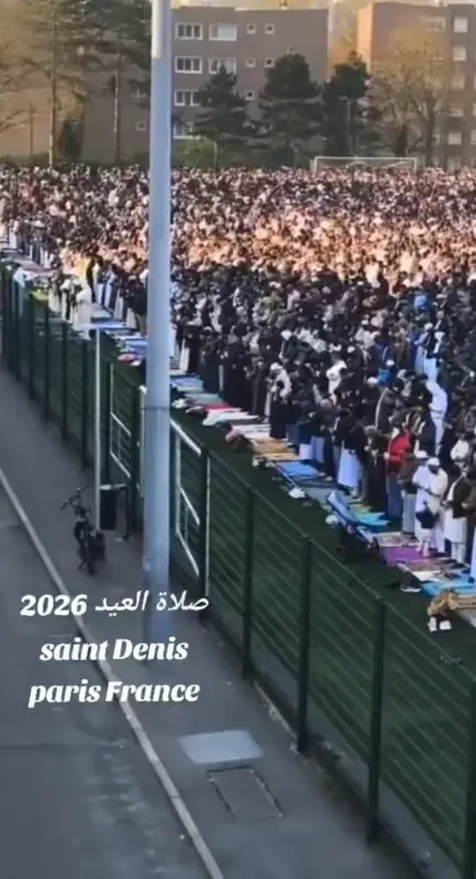 Полиция Парижа усилила патрули в день праздника, но масштаб скопления людей превысил все ожидания. Улицы буквально заполнены верующими, пришедшими отметить завершение поста. Видео с дрона показывает плотные потоки людей, движущихся к мечетям и площадям района.