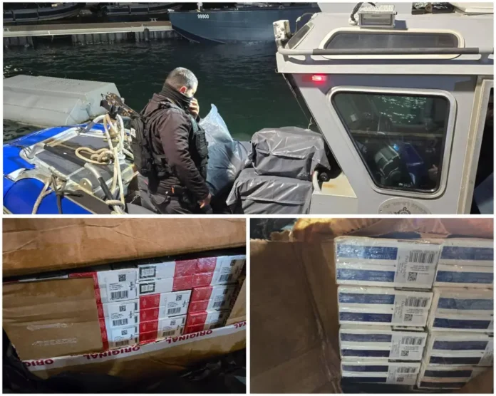 Контрабандисты на быстроходной лодке пытались доставить на берег 4,500 пачек сигарет общей стоимостью около 2 миллиона шекелей. Сигареты, по предварительным данным, были загружены с торгового судна, прибывшего из Кипра.