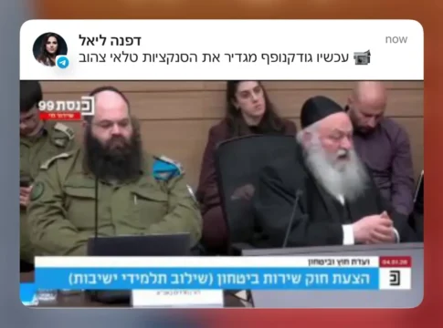 Депутат Кнессета обрушился с критикой на раввина Йцаака Гольдкнопфа после его выступления в парламентской комиссии. «Мой отец носил жёлтую звезду в будпештском гетто только потому, что не существовало еврейской армии, способной защитить его жизнь. Мой дед носил жёлтую звезду, когда его убивали в концлагере», — заявил парламентарий.