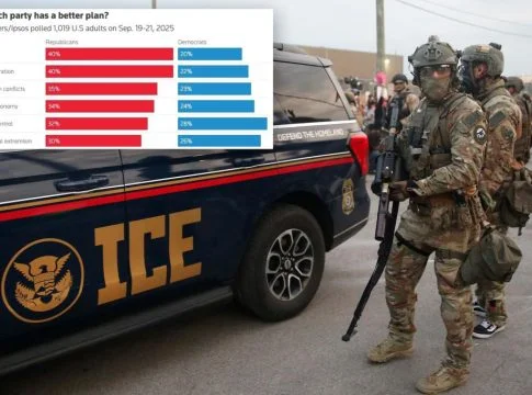 Наибольшее преимущество республиканцы получили по вопросам преступности и иммиграции, опередив демократов на 20 и 18 процентных пунктов соответственно. В вопросах внешней политики и экономики республиканцы также лидируют с преимуществом в 12 и 10 процентных пунктов соответственно.