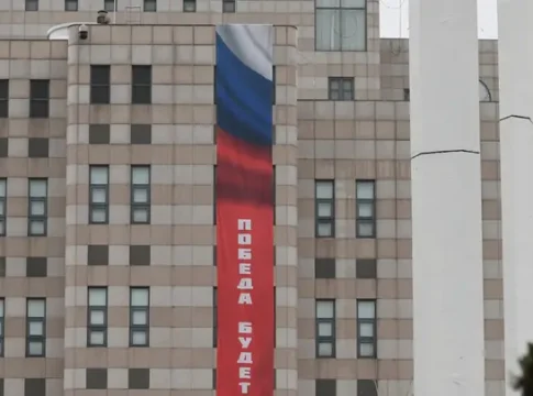На фасаде российского посольства в центре Сеула появился трёхцветный баннер с надписью «Победа будет за нами». Полотно развернули накануне второй годовщины полномасштабного вторжения России в Украину.