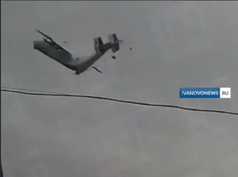 Опубликовано видео крушения российского военно-транспортного самолета Ан-22, произошедшего на этой неделе. Кадры запечатлели момент, когда самолет разрушился прямо в воздухе.