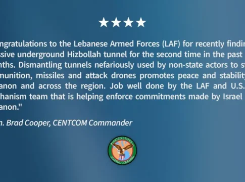 Командующий американского военного командования на Ближнем Востоке (CENTCOM) Брэд Купер приветствовал действия армии Ливана, которая обнаружила крупный туннель шиитского движения Хизбалла. Это уже второй подобный объект, найденный за последние два месяца.