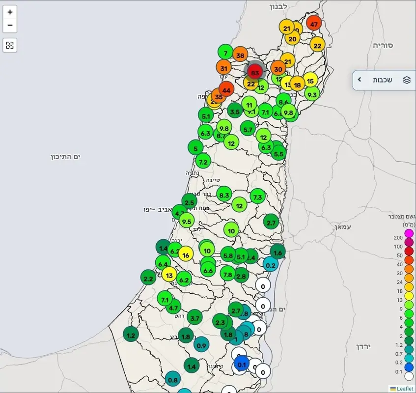 Суббота выдалась ветреной и проливной — точно так, как прогнозировали метеорологи. Осадки сосредоточились над западной части Галилеи, поэтому восточные водотоки пока не показали заметного подъёма уровня.