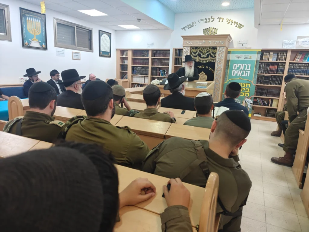 Здесь служат бойцы ультраортодоксального батальона Нецах Йехуда, которые потеряли товарищей, но проявили мужество и доблесть в боях на севере сектора Газа. Церемония прошла в присутствии солдат, командиров, раввинов и благотворителей.