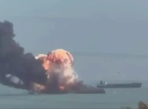 Кадры, опубликованные в соцсетях, запечатлели мощные взрывы, огненные шары и густой чёрный дым, поднимающийся над водами Персидского залива. Масштаб повреждений пока оценивается.