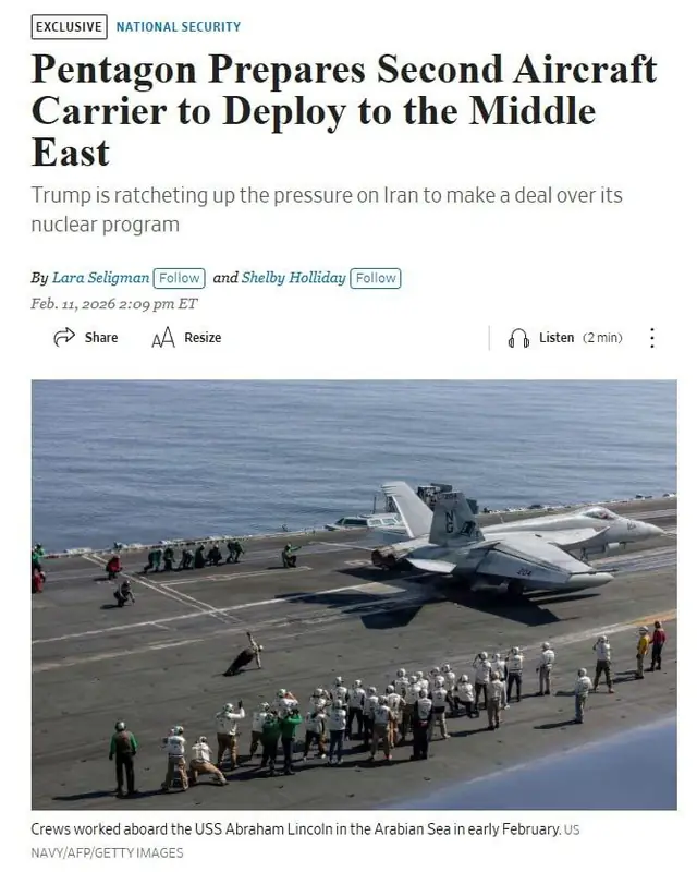 Подготовка второго авианосца усиливает военное присутствие США в регионе на фоне растущей напряженности вокруг ядерной программы Ирана. Решение о дополнительном размещении военных сил демонстрирует готовность Вашингтона применить силу в случае обострения ситуации.