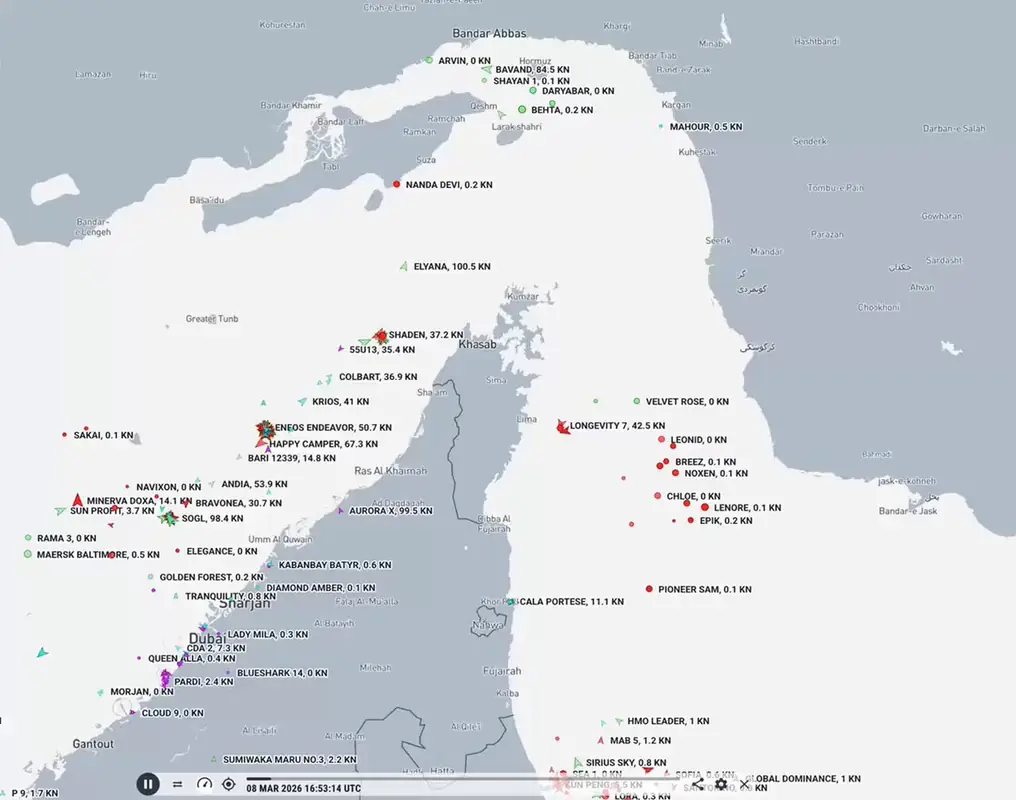 Судоходные компании всё чаще отключают транспондеры при проходе через Ормузский пролив. Капиталы гасят идентификаторы перед входом в узкий морской коридор и возвращают сигнал лишь после выхода из него.