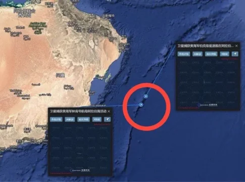 Американский авианосец Abraham Lincoln зафиксирован южнее Омана. Координаты опубликовали OSINT-эксперты, проанализировав снимки китайских спутников.