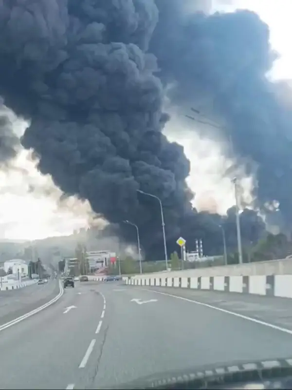 В Туапсе зафиксировали выпадение «черного дождя» после пожара на нефтяном терминале. Темный налет покрыл автомобили, дороги и здания в результате удара беспилотника по местному нефтеперерабатывающему заводу.