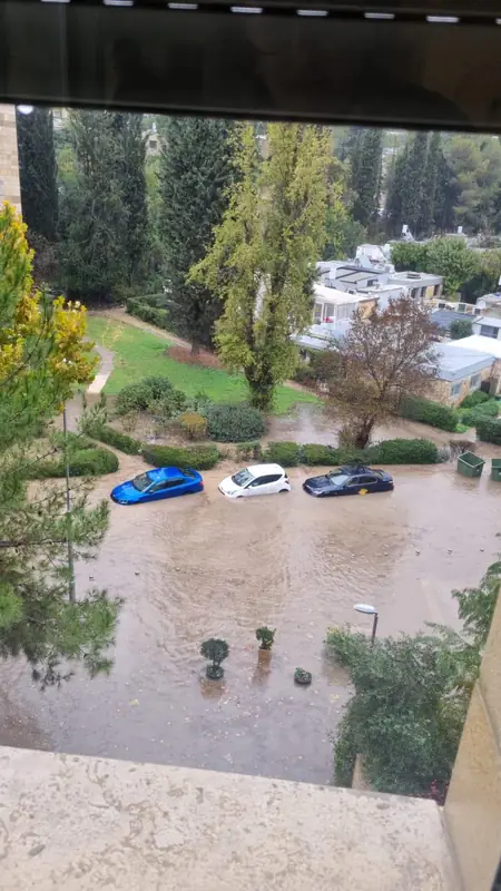 Иерусалим оказался под водой: мощный ливень, пролившийся вечером, превёл улицы района Рамат Шарет в настоящие реки. Очевидцы публикуют кадры, на которых потоки воды смывают припаркованные автомобили и затапливают подвалы многоэтажек.