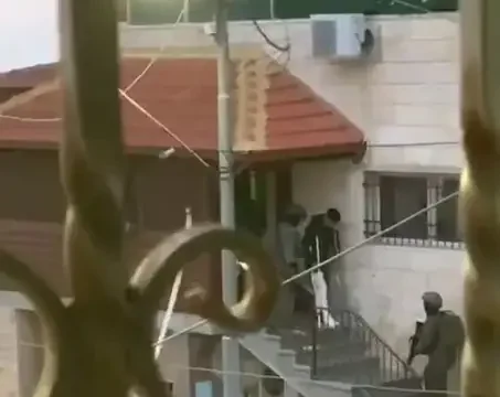 Камеры зафиксировали момент задержания разыскиваемого палестинца в Текоа, юго-восточнее Вифлеема. На кадрах видно, что на мужчине гипс, глаза закрыты повязкой, и он сам спускается по ступеням под конвоем бойцов ЦАХАЛа.