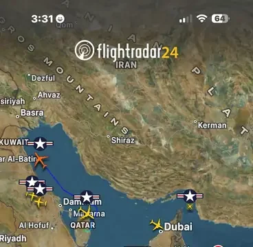 В небе над Персидским заливом за последние часы резко выросла активность авиации Вооружённых сил США. Открытые радиолокационные данные показывают одновременное присутствие сразу нескольких типов самолётов и беспилотников, выполняющих задачи разведки, дозаправки и грузоперевозок в непосредственной близости от иранского побережья.