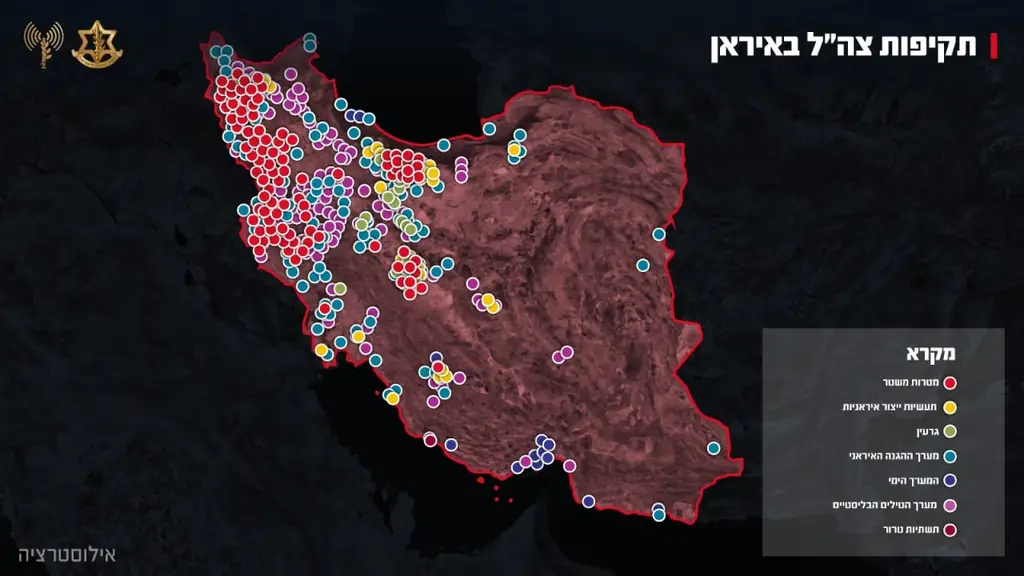 По данным армии, общее количество отдельных авиаударов превысило 10 000, охватив порядка 4 000 объектов по всей стране. Удары наносились как по военной инфраструктуре, так и по объектам, связанным с иранской ядерной программой.