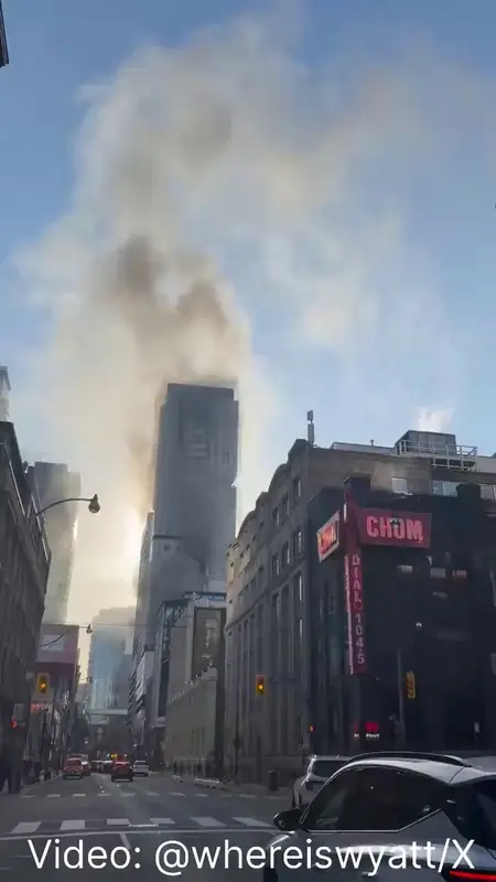 В центре Торонто, Канада, прогремели взрывы и вспыхнул крупный пожар на крыше здания, находящегося в стадии строительства. Очевидцы сообщают о мощном огне и густом дыме, поднимающемся над деловым кварталом города.